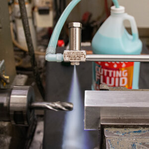 EXAIR’s new 1/8 NPT No Drip Siphon Fed Air Atomizing Spray Nozzles provide a constant and consistent flow of unpressurized fluid for applications such as marking, lubricating, rinsing, cooling, quenching, wetting (humidifying), dust control and humidification. The intelligent design of this Siphon Fed Spray Nozzle allows for the absence of fluid pressure and in turn uses gravity fed fluids or lifted fluids from a 36″ (91cm) siphon height with the added benefit of forcibly stopping fluid flow when the compressed air is turned off becomes.
