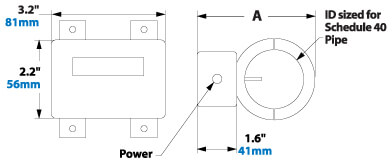 The Digital Flowmeter is designed for permanent mounting to the pipe. It requires the user to drill two 3/16″ diameter holes through the pipe using the included drill bit and locating fixture. The two flow sensing probes of the flowmeter are inserted in these holes. The unit seals to the pipe once the two clamps are tightened. No cutting, welding, adjustments or calibration are ever required.