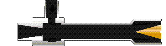 Compressed air, normally 80-100 PSIG (5.5 – 6.9 BAR), is ejected tangentially through a generator into the vortex spin chamber. At up to 1,000,000 RPM, this air stream revolves toward the hot end where some escapes through the control valve. The remaining air, still spinning, is forced back through the center of this outer vortex. The inner stream gives off kinetic energy in the form of heat to the outer stream and exits the vortex tube as cold air. The outer stream exits the opposite end as hot air.