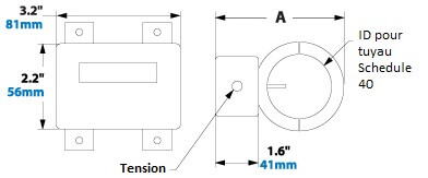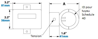 L’utilisateur doit percer deux trous dans le tuyau à l’aide de la mèche et du dispositif de perçage fournis. Ensuite, les deux capteurs de débit du débitmètre sont insérés dans ces trous. L’appareil se ferme hermétiquement sur le tuyau dès que les deux colliers sont serrés. Il n’est pas nécessaire de couper, souder, ajuster ou calibrer. Si l’unité doit être retirée, des bagues de verrouillage sont disponibles. Des jauges NEMA4 (IP66) sont disponibles sur demande.